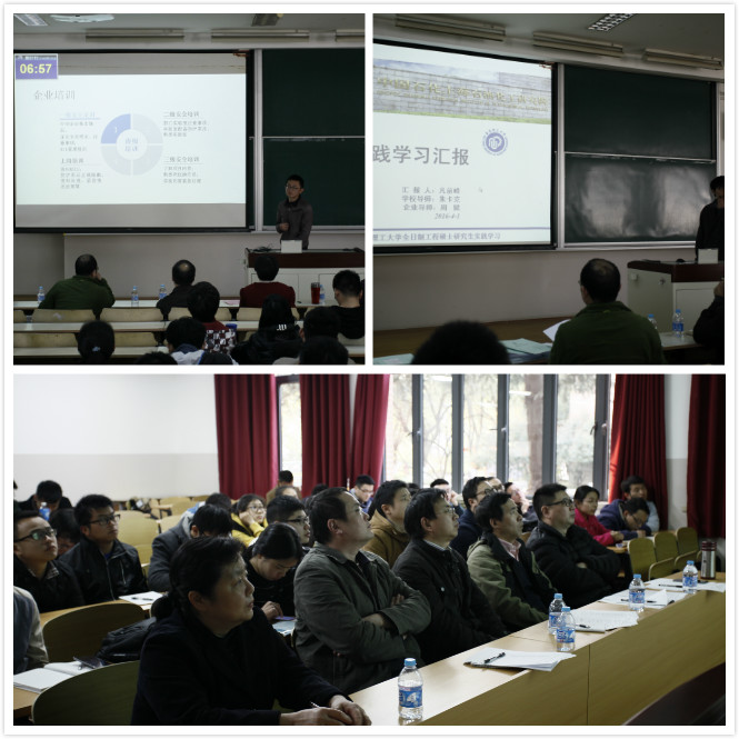 已连续成功举办了六届全日制工程硕士集体答辩,反馈效果良好。本届65名同学按不同实践基地分为中石化上海工程公司团队、巴斯夫(中国)有限公司团队、索尔维(中国)投资有限公司团队、上海华谊集团公司团队、中石化上海石油化工研究院团队及院级实践基地六个团队,每个团队都有负责人对成员进行协调管理,定期将队员的实践近况和感想收获制做成简报向学院汇报并在不同团队之间交流传阅。各个团队在实践中期集中向学院汇报阶段性进展。整个实践阶段,同学们每周向校内导师汇报自己的实践动向。
