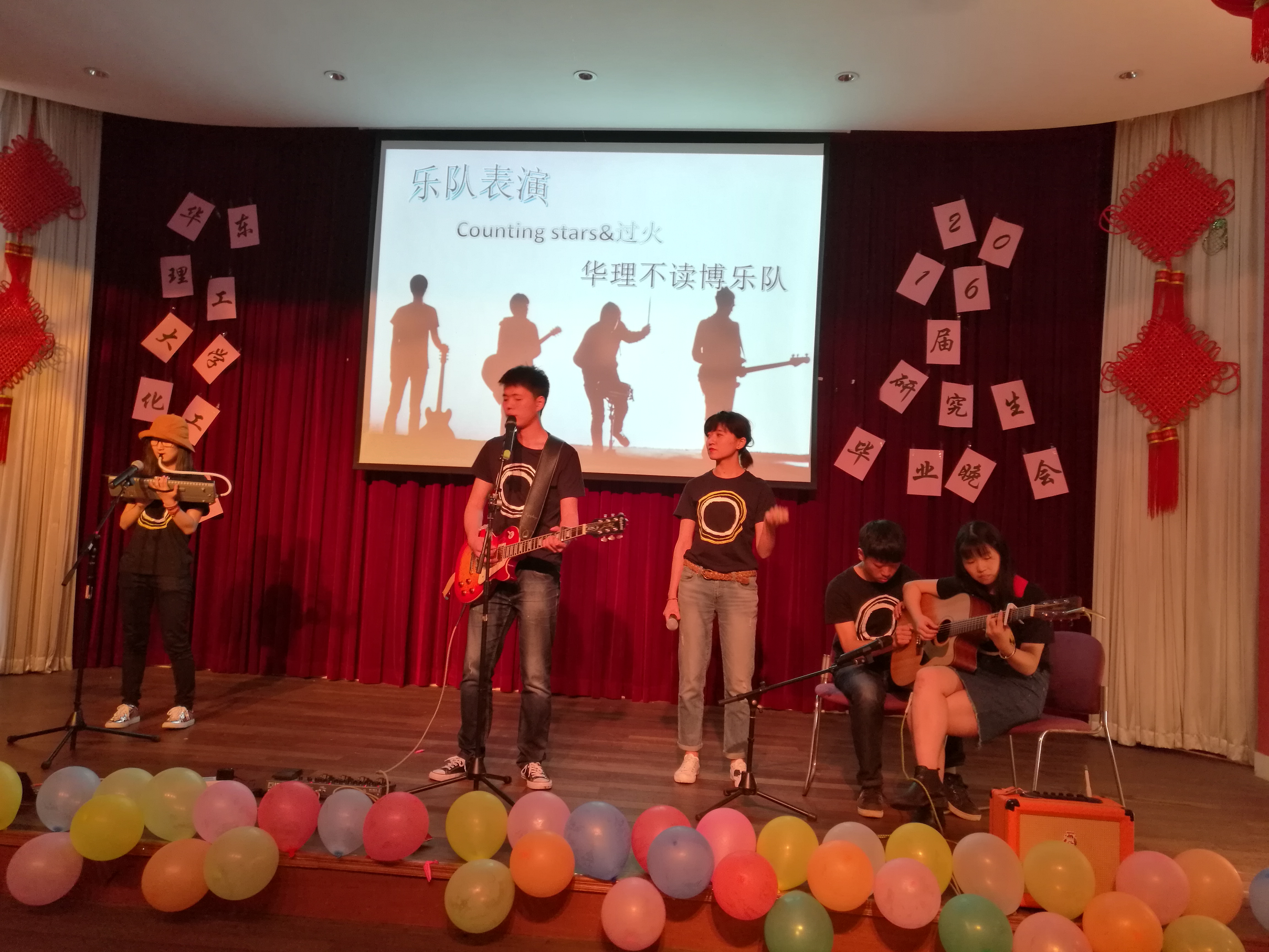 “指缝太宽而时间太瘦,似水的流年在今天都化作了美好的回忆。”开场白便带我们走进了回忆。晚会中,小品《我的实验室日子》将研究生的日常的实验室生活以幽默风趣的形式表达出来,出彩的创意赢得台下阵阵掌声。由学校华理鹊桥的运营团队带来的小品《相亲记》诙谐幽默,故事跌宕起伏,引得台下笑声不断。歌曲串烧、魔术表演等节目丰富多彩,让台下毕业生们大呼过瘾、掌声不断。在晚会接近尾声时,由学生代表带来的朗诵,感情真挚,情感突出,让不少同学潸然落泪,甚至有一名女同学直接上台给老师们深情的拥抱,向老师们表达感激与不舍,在场老师和同学纷纷动容。