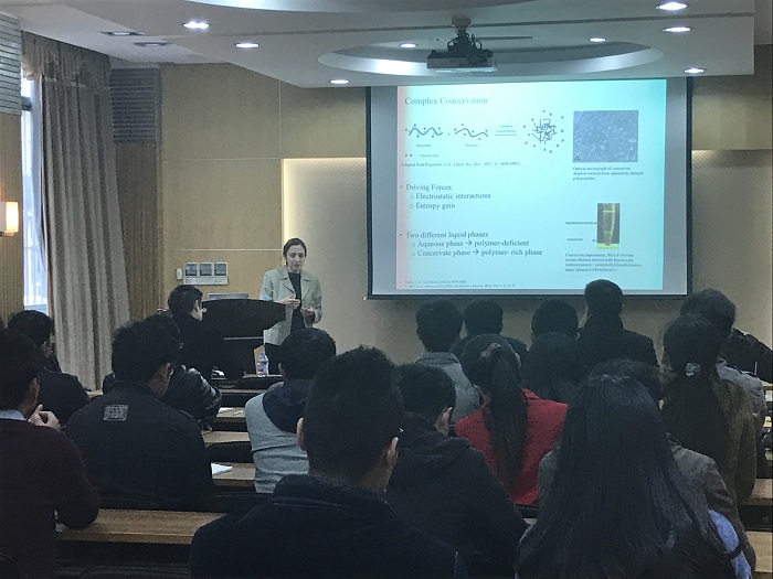 徐汇校区交流访问并作了题目为”Complex Coacervation in Protein-Polyelectrolyte & Polyelectrolyte Polyelectrolyte systems”的学术报告。郭旭虹教授主持了主题报告会,同时出席会议的还有欧美无码