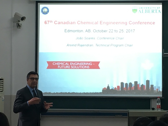 报告会上,Soares教授介绍了他的团队在烯烃聚合反应工程方面的研究进展,并详细介绍了聚合反应器中单中心催化剂催化乙烯与1-辛烯共聚动力学的最新研究方法以及多相催化剂烯烃聚合反应动力学的建模方法等。报告结束后,Soares教授与参加报告会的师生进行了热烈的讨论与交流,并对大家的疑问作了详细的解答。