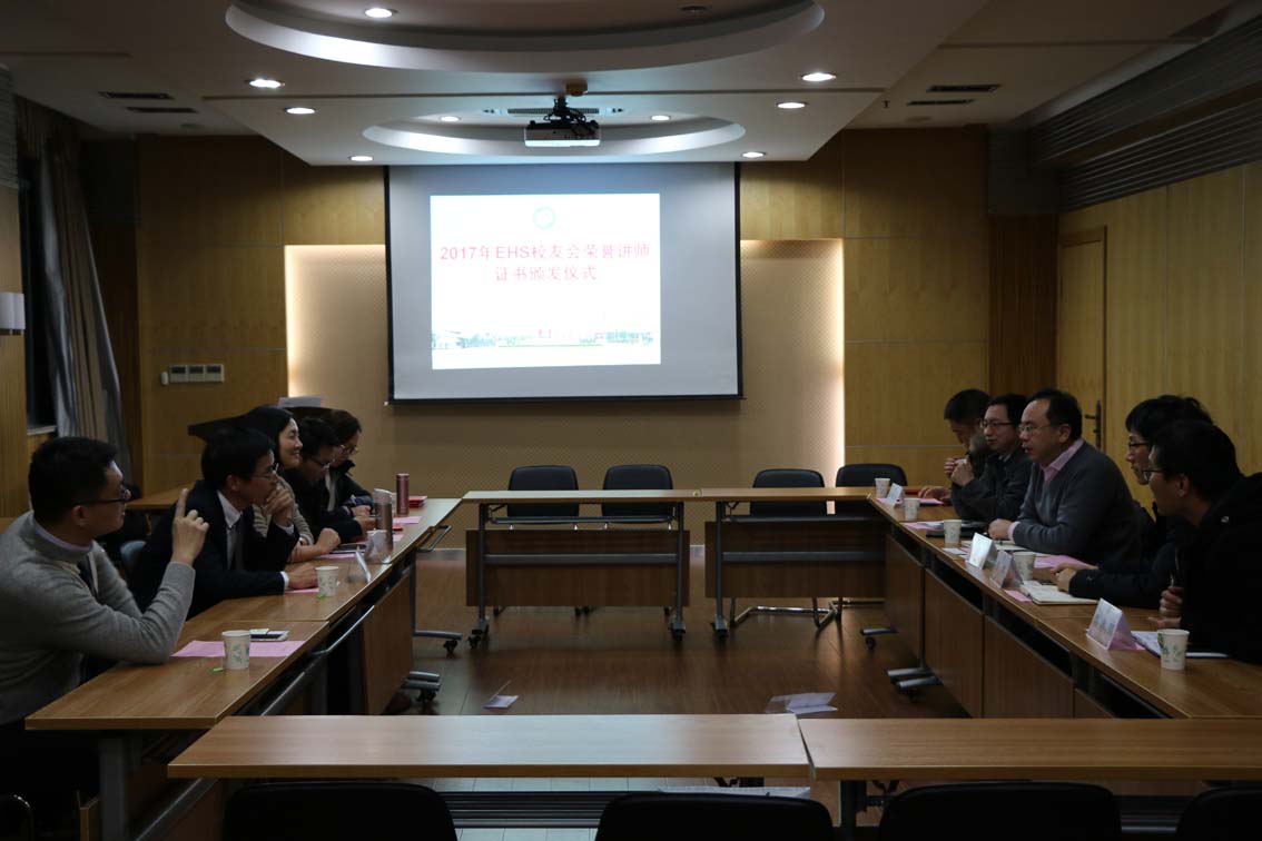 2017年EHS校友会荣誉讲师证书颁发仪式在实验十六楼110会议室举行,金茂律师事务所吴荣良律师、上海绿洲环境技术有限公司总经理杨丹丹女士、DSM公司梁承刚、诺华集团(中国)共享服务管理中心谢静经理、阿科玛(中国)投资有限公司徐燕晓等EHS校友会领导与课程讲师到场,欧美无码