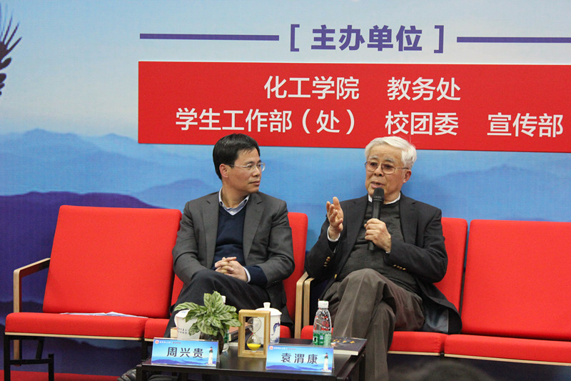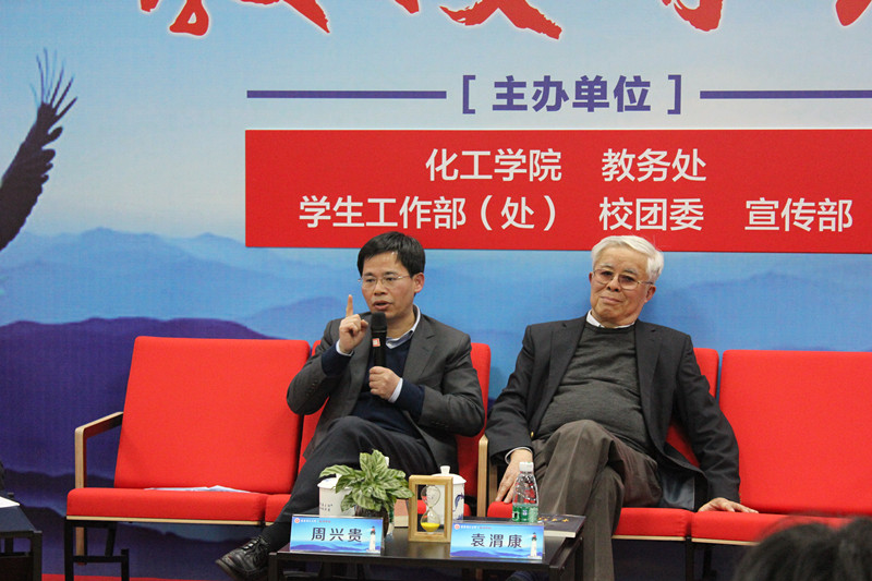 活动伊始,三位教授分别针对本次话题发表了自己的感悟。袁渭康教授表示,作为一名大学生,应着重修炼“内外功”。外功体现在“认真做事,实在做人”,内功修炼需要同学们通过每一件小事不断培养和训练自身的克服困难的心理素质。当内外功兼修时,无论未来有多少未知与迷茫,内心都会有强烈的意志去面对,那么任何困境都可以从容应对了。