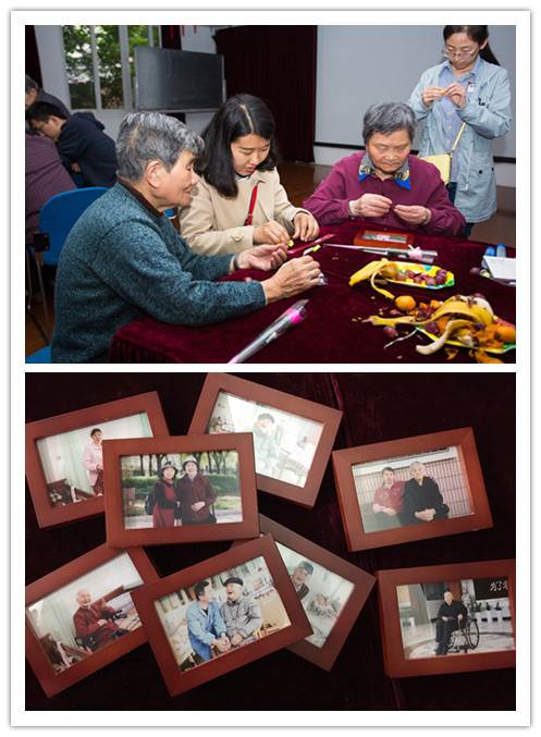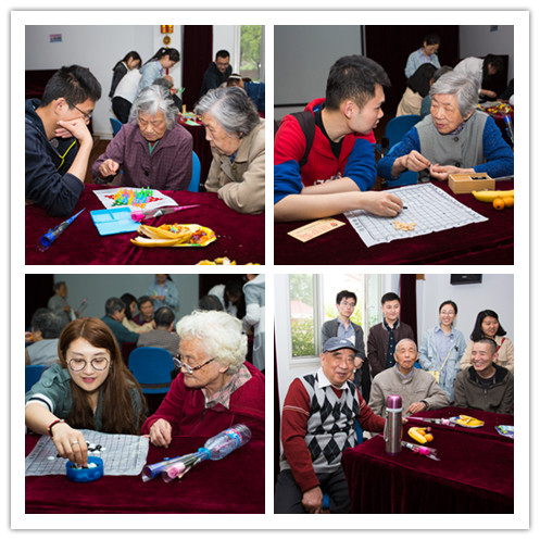 在合影留念和趣味活动中,同学们自发分为几个小组,有和老人下棋的,有和老人谈心的,也有和老人一起做手工的。大家都乐在其中,现场气氛达到了高潮。