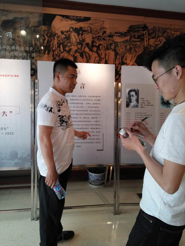 的几个党支部联合组织了参观团中央机关旧址和中共淞浦特委机关旧址。我们走在繁华的淮海中路上,拐进了一条不起眼的弄堂里,看到了红墙黑瓦的渔阳里6号------团中央机关旧址,这里和外面仿佛是两个世界,没有了喧嚣,自是一片静谧的天地。映入眼帘的序厅里挂着一幅横跨三面墙的巨幅铜板壁画。五四运动、刘胡兰就义、红军长征、新中国成立、草原英雄小姐妹、女排夺冠、杨利伟乘“神舟五号”升空等画面,真实再现了80多年来我国青年运动蓬勃发展的光辉历程。在刘少奇、任弼时、俞秀松这些名字的映衬下,我仿佛看到了那时作为一名青年人所担负的抱负和责任,我们也要像他们一样坚定着自己的理想,发挥着自己的光和热,把渔阳里6号的光芒和影响穿透地域和时空的界限,继续发扬光大。