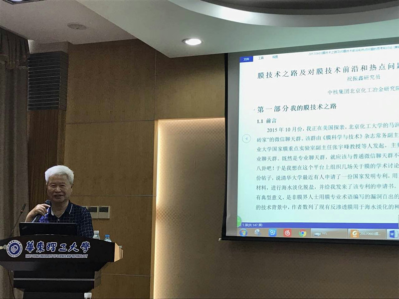 6月9日上午,中核集团北京化工冶金研究所祝振鑫研究员应邀来校访问,并在实验十六楼110室作了题为:“膜技术之路及对膜技术前沿和热点问题的思考和讨论”的学术报告。报告会由化学工程研究所所长许振良教授主持,浙江大学宁波理工学院雷引林教授、天津工业大学皇甫风云教授等教师与研究生70余人参加了报告会。祝振鑫研究员从他的出身、求学之路、工作之路和膜技术之路说起,分享了他的童年、中学和大学时代的轶事,以及工作后的心得体会,并重点讲解了他如何走上了膜技术的研发工作。同时,针对膜技术前沿和热点问题,祝振鑫研究员讲了自己的看法和观点。祝振鑫研究员风趣的讲话风格,热情洋溢的演讲感染了在场的研究生,并进行了热烈讨论与交流。此外,祝振鑫研究员与欧美无码