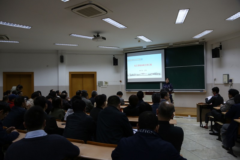 院长助理兼化工系系主任吴艳阳做学院本科教学汇报,将学院的历史沿革、办学目标与定位、办学思想与实践以及本科教学取得的各项成效进行梳理并讲解。副院长赵双良通报了审核预评估专家反馈意见,将预评估遇到的共性问题进行总结凝练,并对学院此前开展的教学资料专项检查工作以及领导听课情况做通报,提醒各专任教师规避问题及时整改。