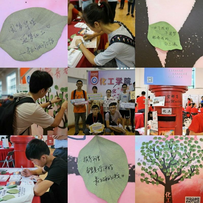 18级的新生们陆续抵达体育馆副馆。他们在化工树和明信片上写下对大学生活的憧憬和期许,完成新生报道,并开启了华理的圆梦之旅。