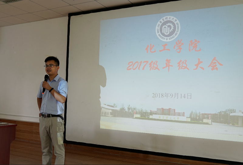 2017级年级大会在分两批在大学生活动中心117召开,会议由2017级辅导员姜贤武主持。