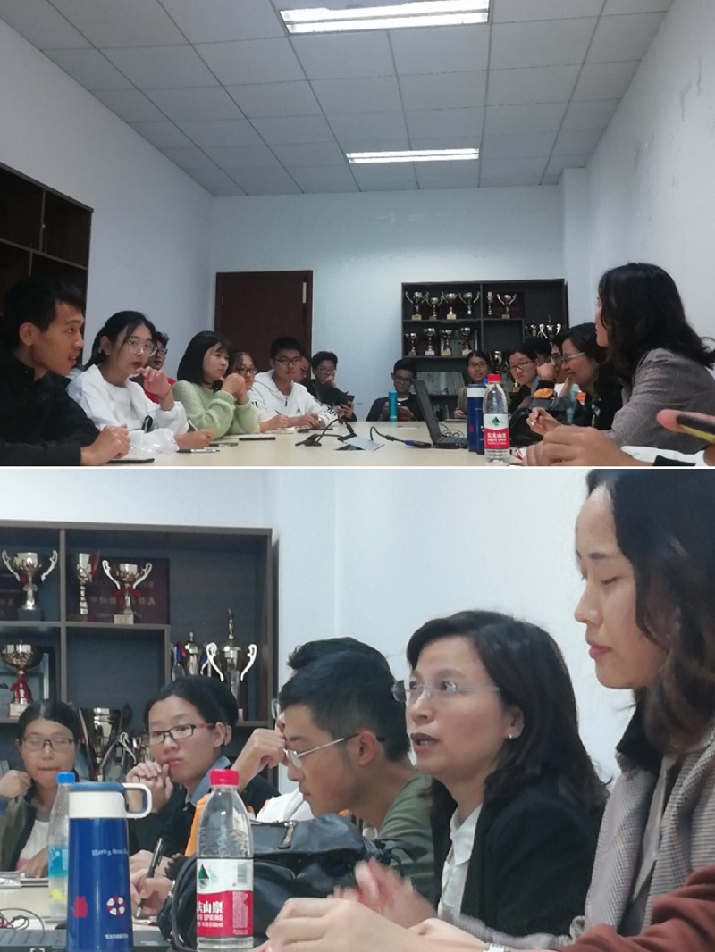 在随后的交流过程中,李莉教授回答了学生关于毕业去向、本科生海外交流项目等问题,建议想继续深造的同学积极参与大学生创新创业教育实践活动,多与专业教师交流、感受科研氛围、熟悉当前的科研热点;选择就业的同学要夯实专业知识,提升自身综合素质,在学有余力的情况下到企业参与实习工作;计划参加海外交流项目的同学要尽快找到适合自己的项目,了解项目要求并努力提高绩点,提升外语能力。