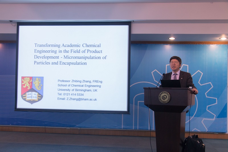化学工程联合国家重点实验室/上海市化学化工学会化学工程专业委员会主任赵玲教授邀请,英国皇家工程院院士伯明翰大学张志兵教授(FREng)来校访问并在逸夫楼演讲厅作了题为“Transforming Academic Chemical Engineering in the Field of Product Development - Micromanipulation of Particles and Encapsulation”的学术报告。报告会由赵玲教授主持,副校长李涛教授到会并致欢迎辞,学校百余名师生踊跃参加了学术报告会。