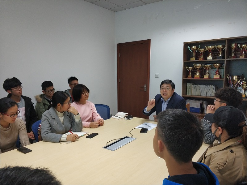 2018级师生座谈会在奉贤校区实验六楼135会议室召开,学院党委书记、院长朱学栋老师,2018级辅导员刘宗慧以及30余名2018级学生齐聚一堂,围绕学风建设以及学生管理等方面展开讨论。