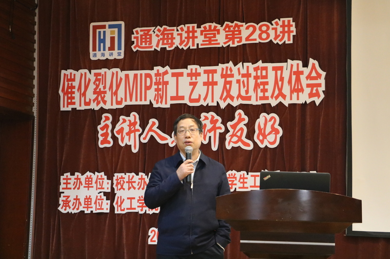 杰出校友、中石化集团公司石油炼制领域首席专家许友好教授应邀带来了题为“催化裂化MIP新工艺的开发过程及体会”的专题讲座。