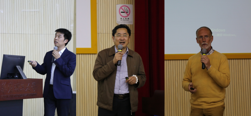 段学志从研究团队、科研方向、平台设施和标志性成果等方面重点介绍了化学工程联合国家重点实验室华理分室及联合化学反应工程研究所的情况,也对催化反应工程研究组进行了介绍,为学生的全面发展创造了优质条件。周晓龙教授介绍了石油加工所的历史及未来展望。他说,石油加工所杰出校友辈出、师资力量雄厚,是适合学生发展的优秀平台。Martien院士从团队建设、学生情况、设备设施、研究方向和研究成果等方面对软物质团队进行了介绍。