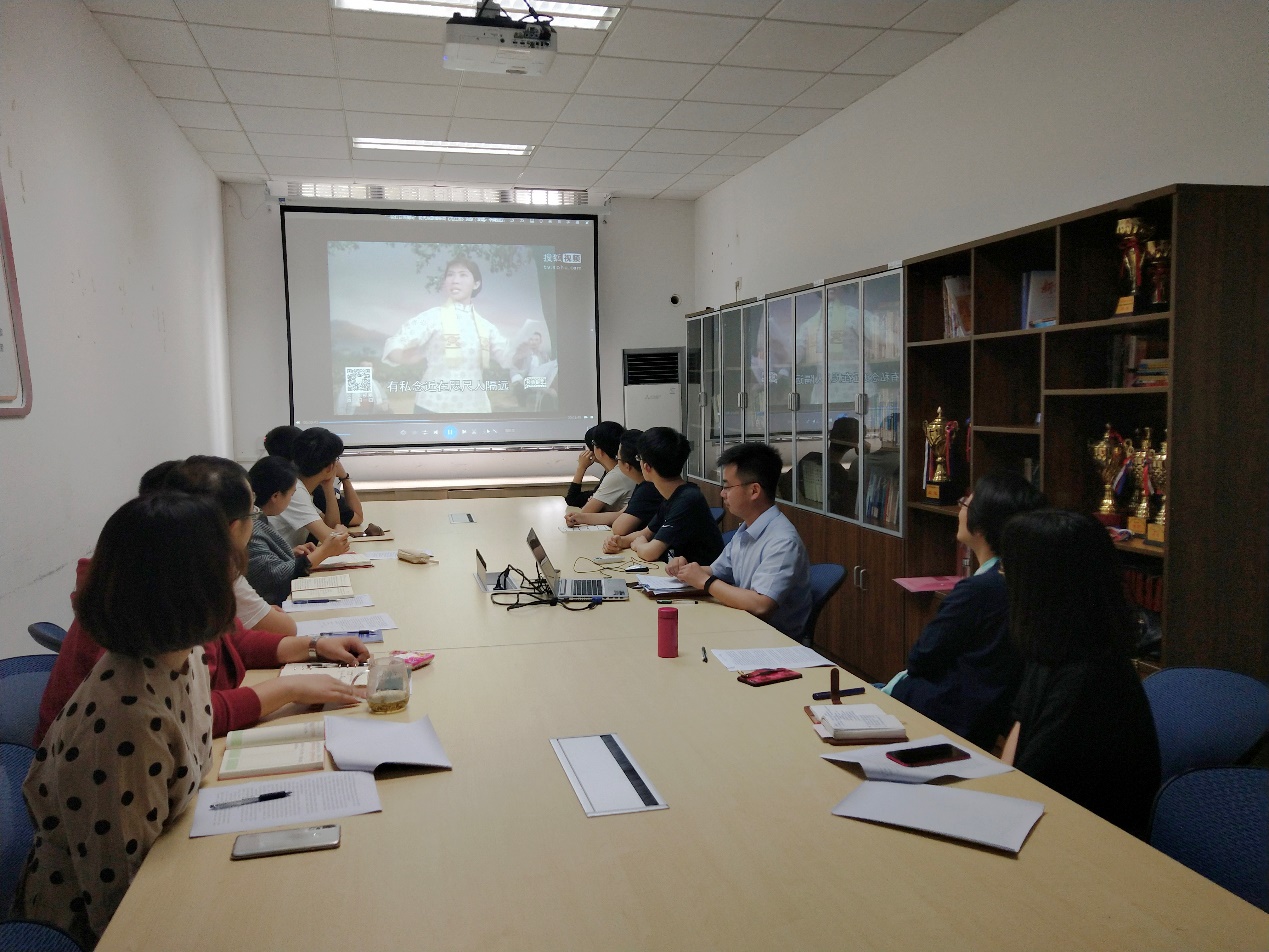 最后,结合时政热点“中美贸易摩擦”,与会老师与学生党员共同观看了革命现代京剧《龙江颂》“一轮红日照心间”和《奇袭白虎团》“打败美帝野心狼”选段。其优雅的唱腔,激昂的唱词,体现了党员同志的对党衷心、为革命牺牲的奋斗精神以及不畏美帝的斗争精神,具有强烈的现实意义。
