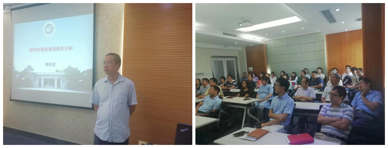联反所、石加所和研究生三个党支部共同邀请了马克思主义学院科技与社会研究所所长黄时进教授在实验16楼610室一起参加了党组织生活交流活动,并由黄时进教授给大家作了题为“2019中国香港局势及分析”的报告。共计36名党员参加了此次组织活动。