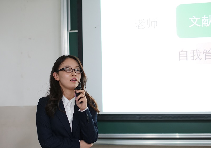 研究生代表孙杨也谈了体会:在科研路上最重要的是要有耐性和毅力,要学会自我管理,多与老师交流,多查阅文献,认真做好实验。她与大家分享了清末海军将领、北洋水师右翼总兵刘步蟾的一句话:此去西洋,深知中国自强之计,舍此无所他求。背负国家之未来,取尽洋人之科学。赴七万里长途,别祖国父母之邦,奋然无悔!