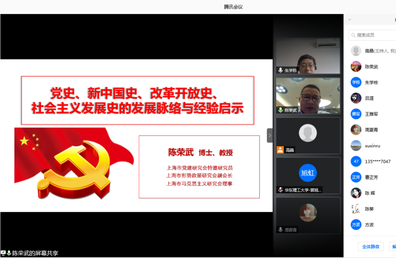 邀请上海市党建研究会特邀研究员、上海市形势政策研究会副会长、上海市马克思主义研究会理事陈荣武教授作题为“党史、新中国史、改革开放史、社会主义发展史的发展脉络与经验启示”的专题报告。欧美无码