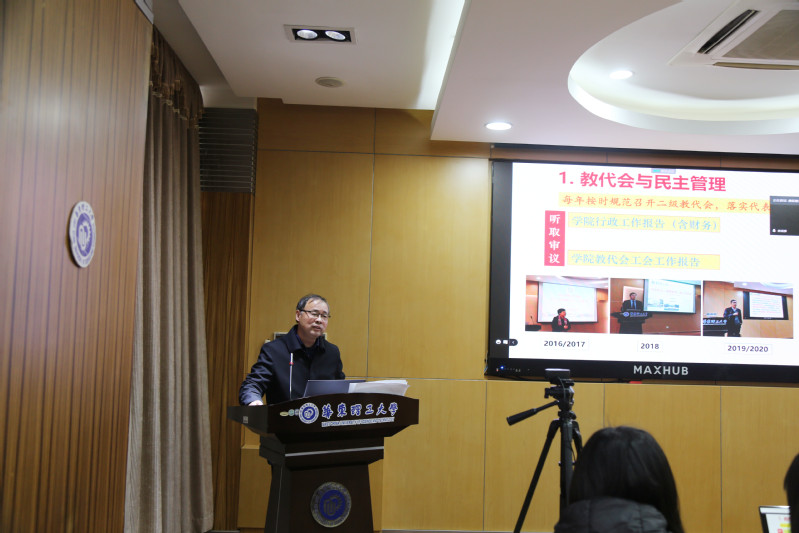 学院工会主席朱志华代表学院第四届工会委员会作了2016 -2020年度院第四届工会委员会工作报告,报告从教代会与民主管理、维权保障与服务、文体活动、工会小家建设、工会经费使用等五大方面全面总结了学院工会在民主建设、维权服务、素质提升、特色活动以及工会自身建设等方面取得的成绩。五年来,代表们认真履职,积极建言献策、工会活动丰富多彩,为增强教职工的凝聚力及为学院的发展作出了贡献。