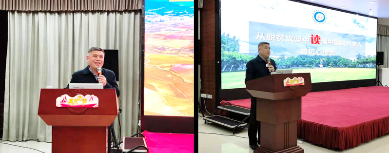 脱贫攻坚战的胜利,创造了人类减贫史上的奇迹。李涛从脱贫攻坚取得的重大决定性成就出发,全面阐述了“上下同心、尽锐出战、精准务实、开拓创新、攻坚克难、不负人民”的脱贫攻坚精神。从华理助力国家级贫困县寻甸的实例出发,李涛介绍了华理人发扬脱贫攻坚精神,倾力奉献、苦干实干的优良传统,同时鼓励青年学子担当起自身的使命,志存高远,争做具有远大理想和坚定信念的爱国者,为打赢脱贫攻坚战、为祖国的发展贡献一份力量。
