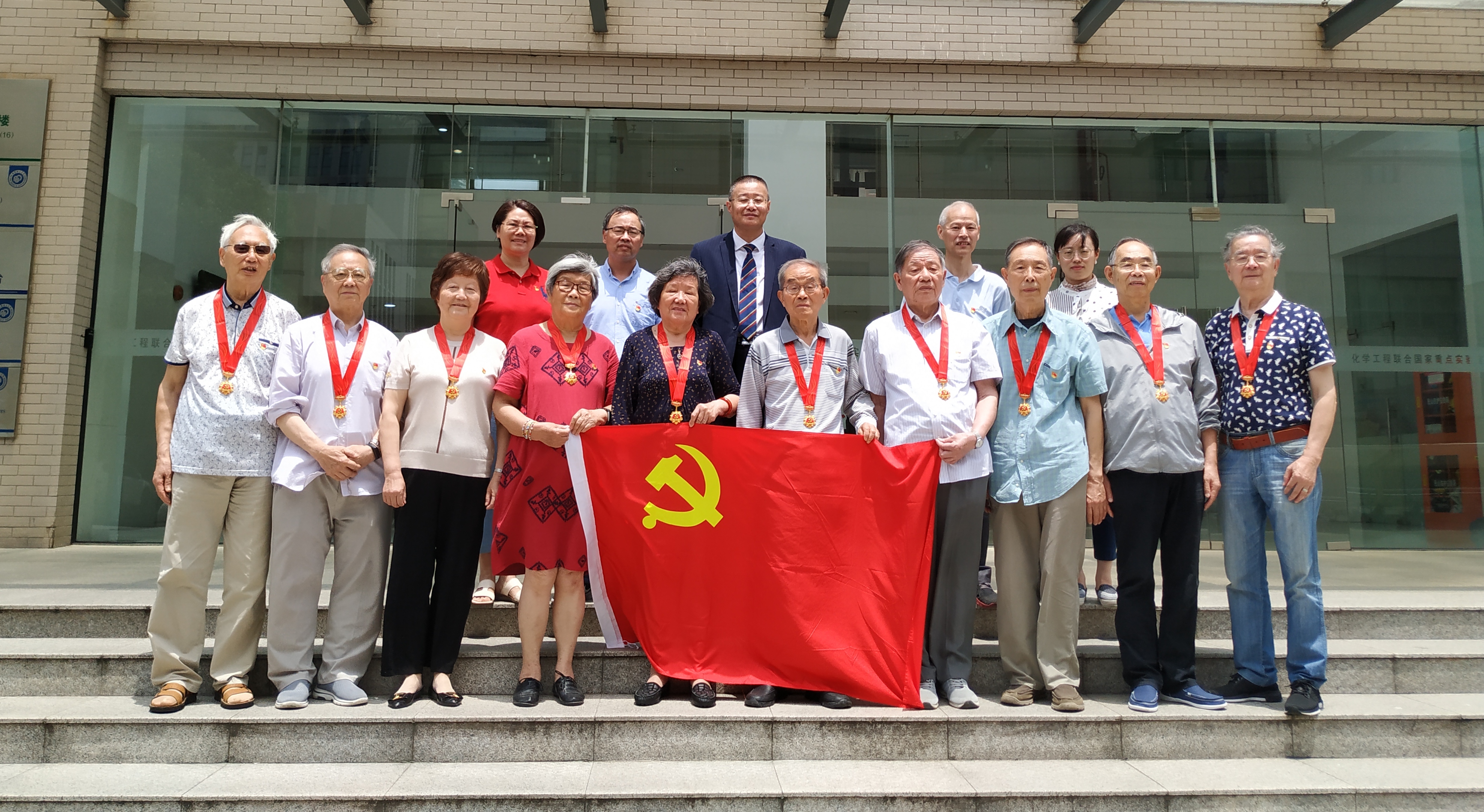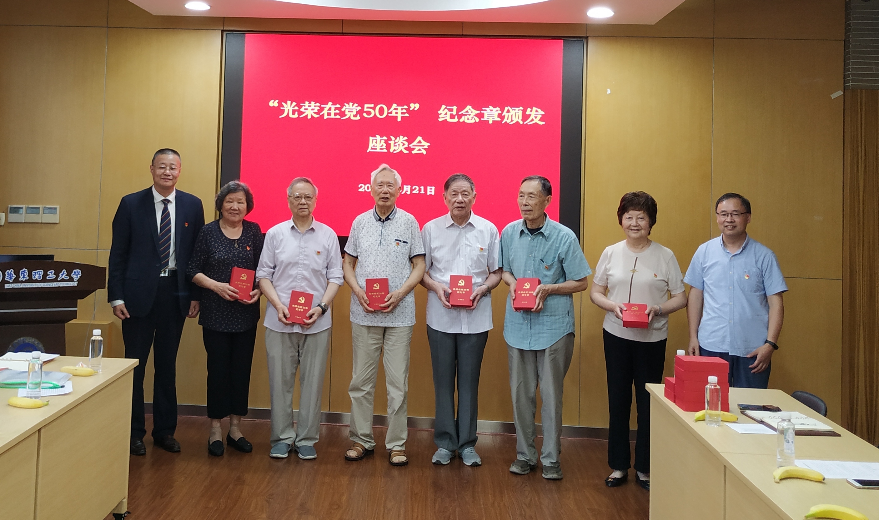 在实验十六楼108室举行“光荣在党50年”纪念章颁发仪式。学院党委委员、副院长方波,工会主席朱志华,党政办主任孙莉,及朱子彬、翁惠新、黄发瑞、任德呈、徐佩若、徐懋生、季桂南、冯国祥、潘炳忠、张培辉、骆赞椿、齐鸣斋等退休老党员出席。活动由离退休工作党委第10党支部书记张华主持。