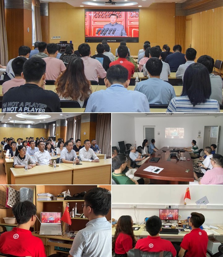 组织师生党员代表在实验十六楼108会议室集体观看了大会直播,更多师生在实验室、办公室、会议室、教室、宿舍等场所观看了直播,学习领会习近平总书记在庆祝大会上的重要讲话精神,共同庆祝党的百年诞辰。