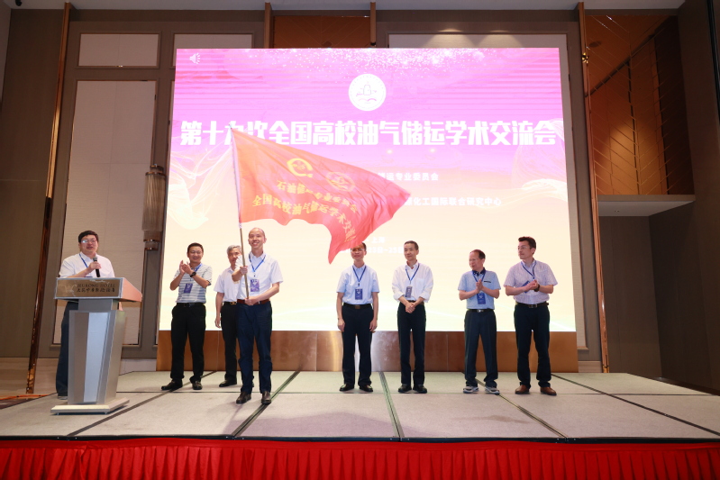 党委副书记陈麒教授手中接过会旗,传递给中国石油大学(北京)副校长付恒升教授。最后,付恒升致辞,欢迎全国油气储运高校师生和企业专家领导一年后北京再相聚。