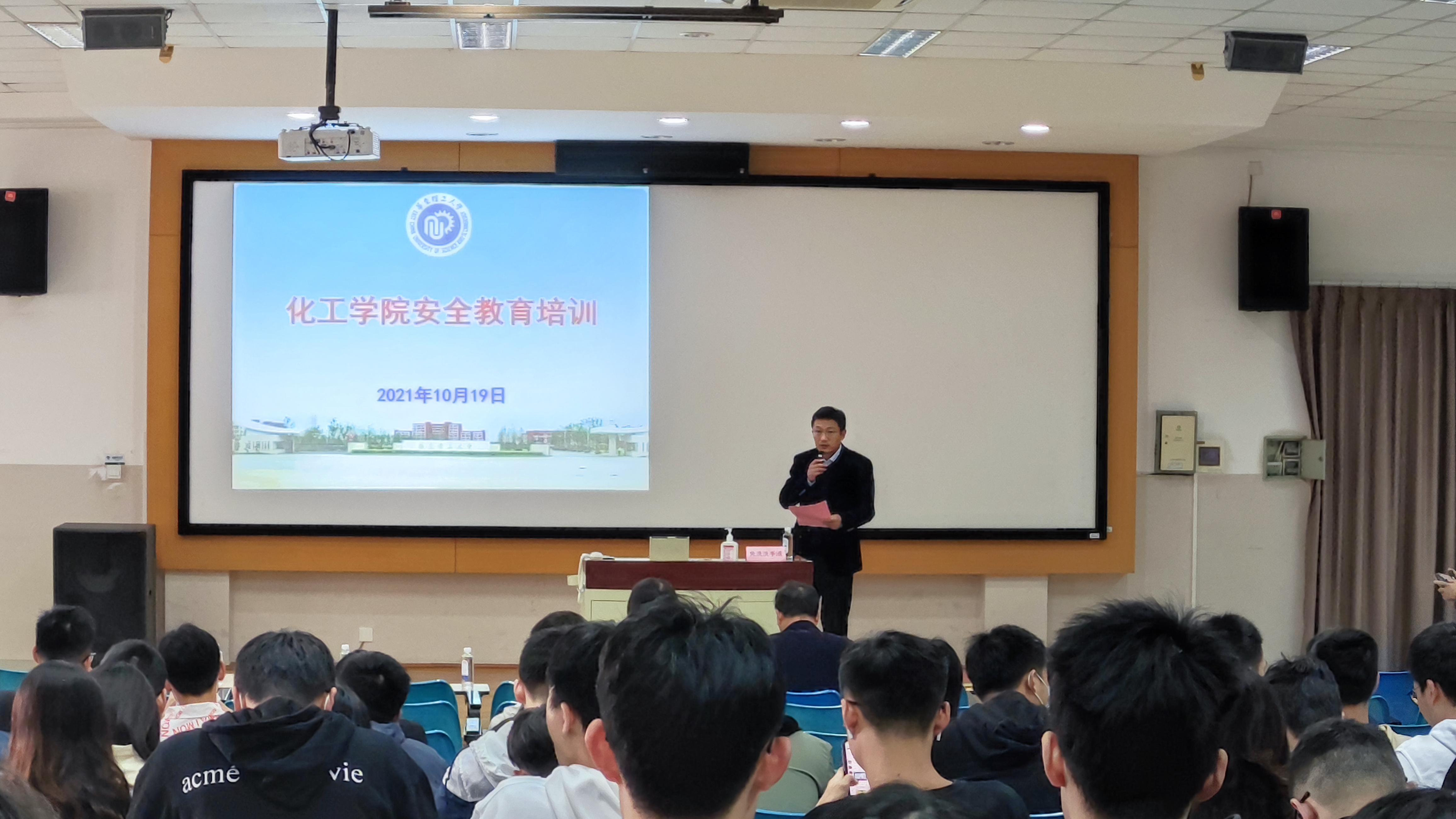 研究生安全培训大会在徐汇校区八教101多媒体教室举行。本次大会特别邀请到了上海交通大学实验室安全与环保中心彭华松副主任。校安全环保办公室主任徐宏勇、李晨晨,欧美无码