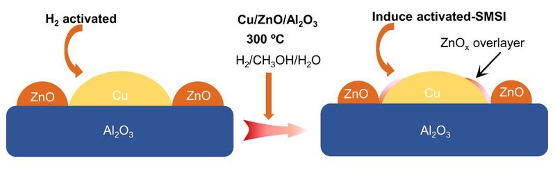 氢能在能源转型中扮演了重要角色,但经济、高效、安全的氢气储运技术已成为当前制约氢能规模应用的主要瓶颈之一。甲醇重整现场制氢为氢能的储运及氢燃料电池的供氢提供了一种方案。诸多催化材料中,铜基催化剂因价格低廉、活性高和一氧化碳选择性低等优点而得到广泛应用。随着基础研究的深入,人们已经意识到决定负载型铜基催化剂活性及稳定性的关键在于金属-载体界面(Energy Environ. Sci. 2019, 12: 3473-3495; Nat. Catal. 2019, 2: 955-970)。然而,工业催化剂结构在制备、活化和反应阶段都会存在动态变化过程,当前催化剂的设计思路主要聚焦于配方或制备方法的优化,难以对其表界面结构演变的动态过程开展主动、定向和精准的调控。
