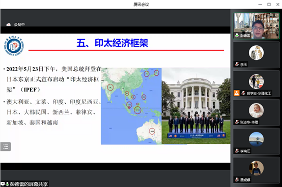 彭德雷从“晚近中国国际条约实践”、“多边贸易体制的危机与新规则”,“各方对中国加入CPTPP的态度”、“中欧投资协定和数字经济伙伴关系协定(DEPA)”、“印太经济框架“五个方面介绍了国际条约与中国实践的发展历程,强调中国现阶段需要坚持统筹推进国内法治和涉外法治,加强涉外法治人才建设,推动构建人类命运共同体,实现共赢共享。