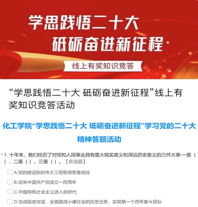 党委和工会近期开展了“学思践悟二十大 砥砺奋进新征程”线上知识竞答活动,以赛促学、以学促知、以知促行,切实把思想和行动统一到党的二十大精神上来。