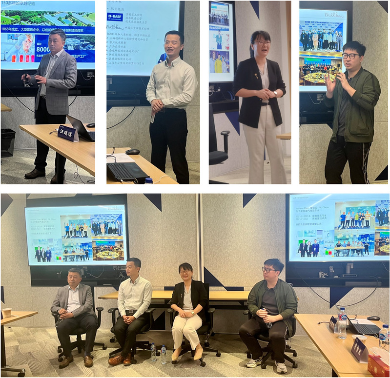 美利肯奖学金颁奖典礼并与校友们进行交流。美利肯企业管理(中国)有限公司亚太区高级人力资源总监于磊、化工部中国区销售总监徐开亮、化工部高级技术经理卢振潇等出席。