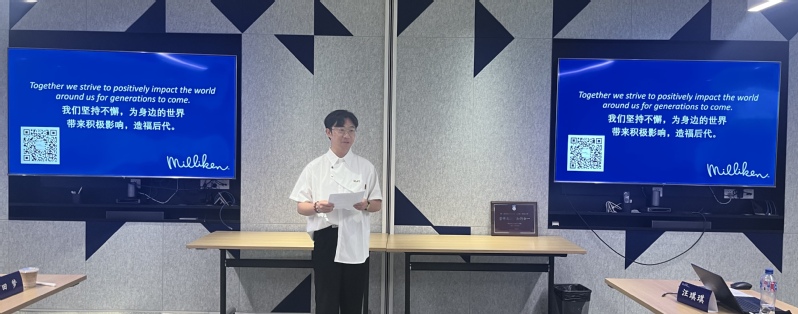 师生的到来表示热烈欢迎。他介绍了美利肯公司的发展历史、业务板块以及企业文化,期待校企双方进一步深化合作,有更多优秀的华理学子加入美利肯,为公司发展注入力量。