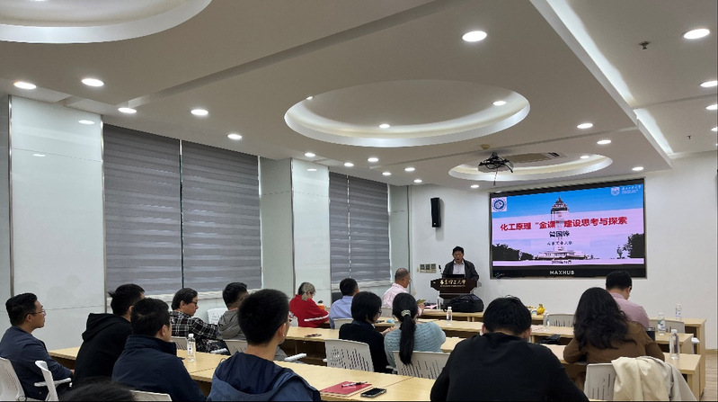 在本次讲座中,管国锋教授分享了他在教学与科研领域的丰富经验和独到见解。他围绕“化工原理‘金课’建设思考与探索”展开了讲述。管国锋教授提出,一流的课程建设应当以学生为中心,通过提升课程的高阶性、创新性和挑战度,引导学生积极参与学习。他还强调了在线上线下翻转课堂教学中创新课程内容、教学方法和教学模式的重要性,鼓励教师将自身的科研成果融入教学,以激发学生的学习热情。