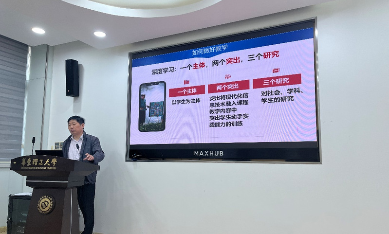 而在“如何成为一名优秀的教师”这个主题下,管国锋教授深入浅出地介绍了高校教师应当具备的素质和能力。他强调了教师应当成为学生学习路上的引路人,做好一个主体(学生中心)、两个突出(融入信息技术、突出学生实践能力)、三个研究(对社会、学科、学生的研究),促进“深度学习”新模式。