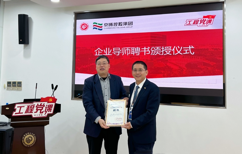 随后,朱学栋为马建斌颁发“企业导师”聘书。他对企业在实训基地建立、协同科研育人方面做出的突出贡献表示衷心感谢,并希望以企业导师聘任为契机,联手企业将研究型和实践型教学有机融合,努力培养既有扎实的理论基础又有较强实践动手能力的化工菁英。