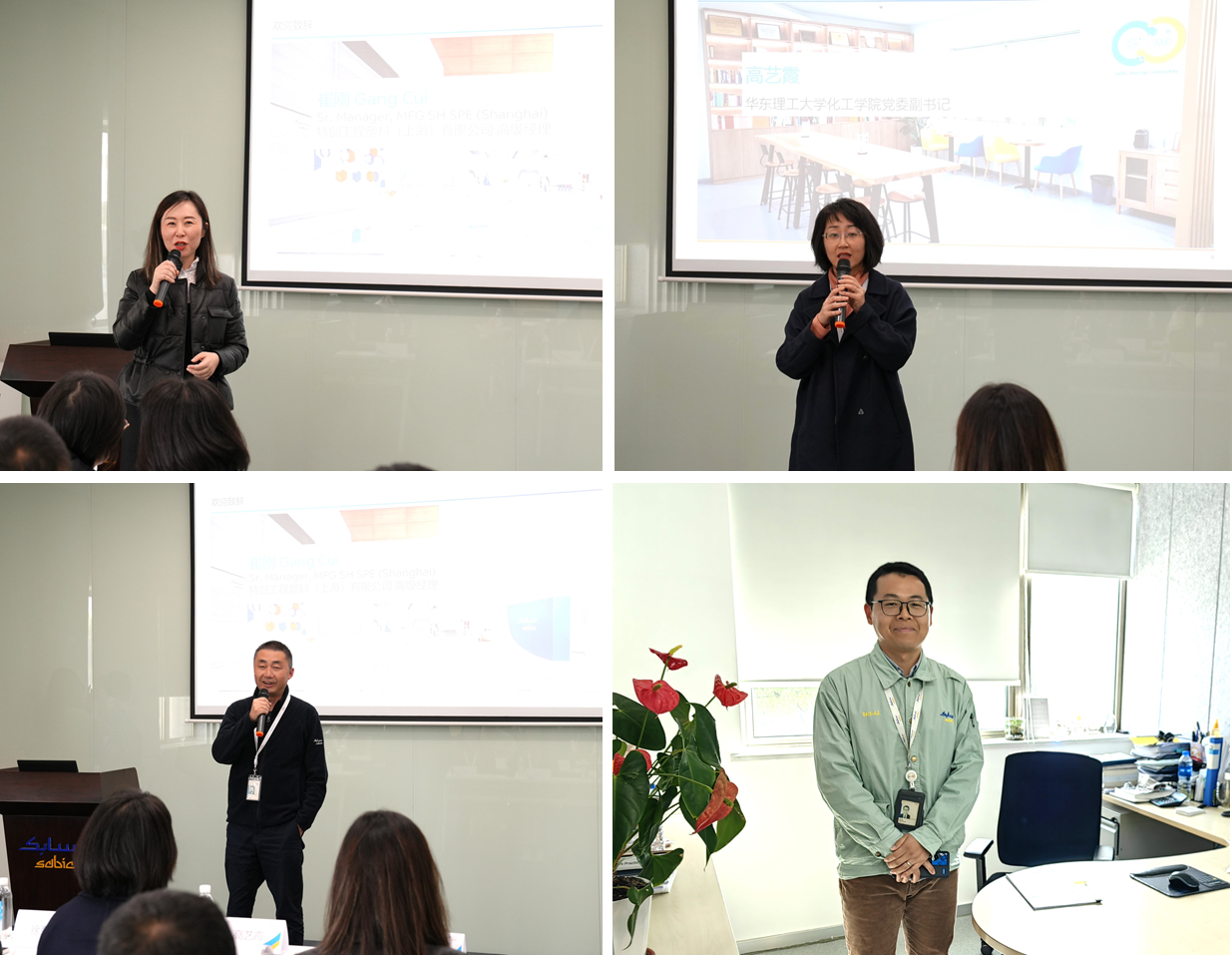 师生一行的到来表示热烈欢迎,并对公司的发展历程、全球影响力、业务布局及主营业务等作了简要介绍。崔刚从工作服的故事展开,阐述了公司的文化和价值观。校友代表、特创工程塑料(上海)有限公司项目与工程经理张阔介绍了上海工厂的发展历程,并介绍了公司产品从研发到生产的绿色闭环产业链。高艺霞对SABIC的精心组织表示衷心感谢,并期待与公司开展更深层次的交流合作,共同探索知行合一的学生培养模式。