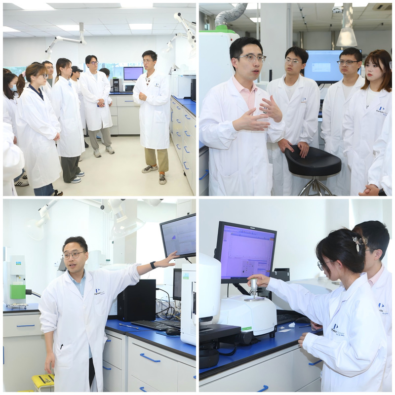 同学们参观了珀金埃尔默先进的实验室设施,分别听取了上海CKC实验室经理、高级原子光谱工程师焦晨佳,材料表征产品线技术支持鲁少鹏和高级色谱应用工程师刘泽宇3位资深工程师关于无机分析、材料表征及色谱技术的专业讲解,并进行了简单的动手操作体验。这些环节不仅让同学们对相关领域的最新技术和应用有了直观的认识,也增强了他们的实践能力。