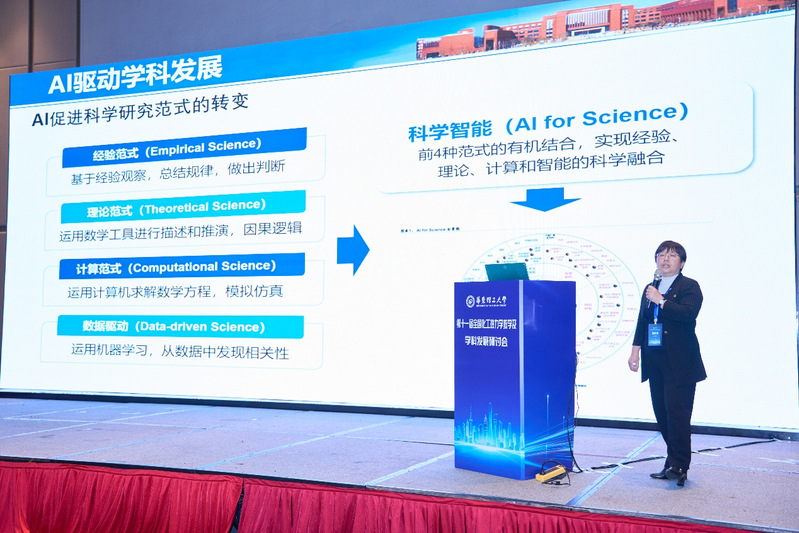 教育部高等学校化工类专业教学指导委员会秘书长、天津大学教务处副处长夏淑倩教授作“AI和化工热力学”特邀报告。她指出,AI已经促进了科学研究范式的改变,将经验范式、理论范式、计算范式和数据驱动有机融合的科学智能(AI for Science)研究新范式已经登上历史舞台,并且必将大放异彩。