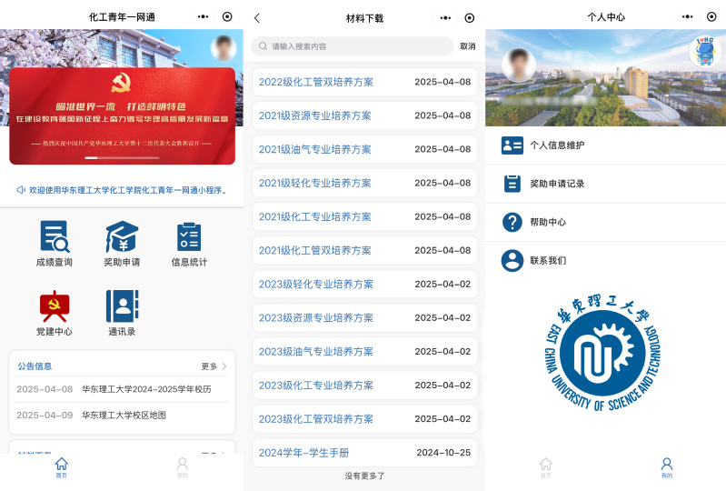 自主研发的“化工青年一网通”小程序于今日正式上线发布。该平台以“一站式服务、全流程覆盖”为核心理念,依托移动互联网技术,打造集教育、管理、服务于一体的智慧学工新生态,为千余名化工学子搭建起立体化、全时段的成长服务生态圈,以科技之笔勾勒出新时代高校思政工作的创新图景,标志着学院学生工作迈入智能化、精准化、个性化的新阶段。
