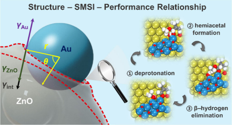 、化学工程与低碳技术全国重点实验室段学志教授、陈文尧特聘研究员等,首次揭示了金属-载体强相互作用(SMSI)的“钟形”尺寸依赖性规律,并基于此设计出高性能的金-氧化锌(Au/ZnO)催化剂,显著提升了氧化偶联反应的效率与选择性。相关成果以“Taming Strong Metal-Support Interactions to Generalize Gold–Zinc Oxide Catalysts in Oxidative Coupling”为题发表于《美国化学会志》(J. Am. Chem. Soc. 2025, 147, 9, 7829–7839)。