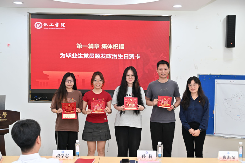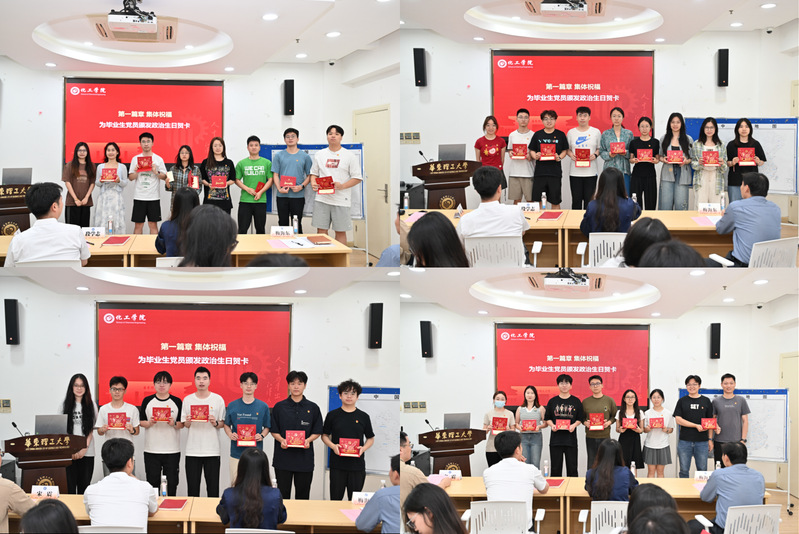 孙莉为4名本科生党支部书记颁发政治生日贺卡,各党支部书记接力传递祝福;现场还随机抽取了6名党员的入党志愿书,并截取“入党志愿”片段,唤醒党员入党初心。