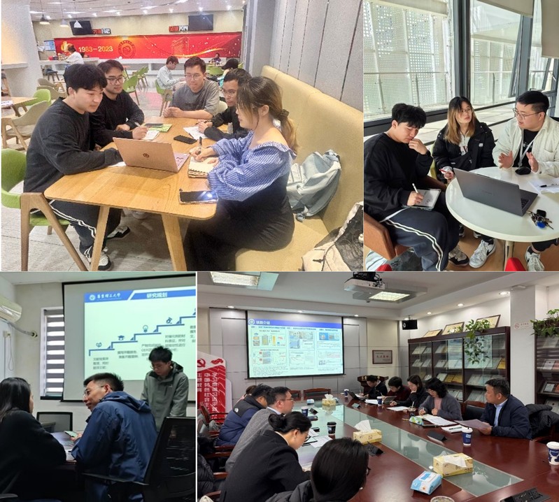 图片说明:团队成员讨论及徐至教授、庄林洲副教授指导照片